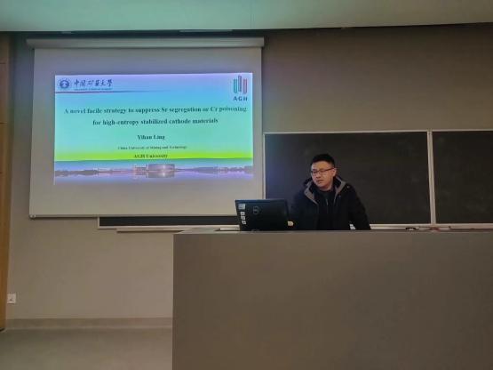 凌意瀚教授应AGH科技大学郑堃教授邀请开展了关于低浓度瓦斯高温燃料电池的安全高效利用及催化反应过程相关等内容的学术报告,介绍了该领域的行业现状、技术进展,低浓度瓦斯高温燃料电池在实际应用中的情况等,并在报告会上热情地为参加学术报告会的研究生解决关于访学、科研难点、科研方法等方面的问题,使员工受益良多。双方后期继续深化两课题组深入合作,教师与员工互访等活动。