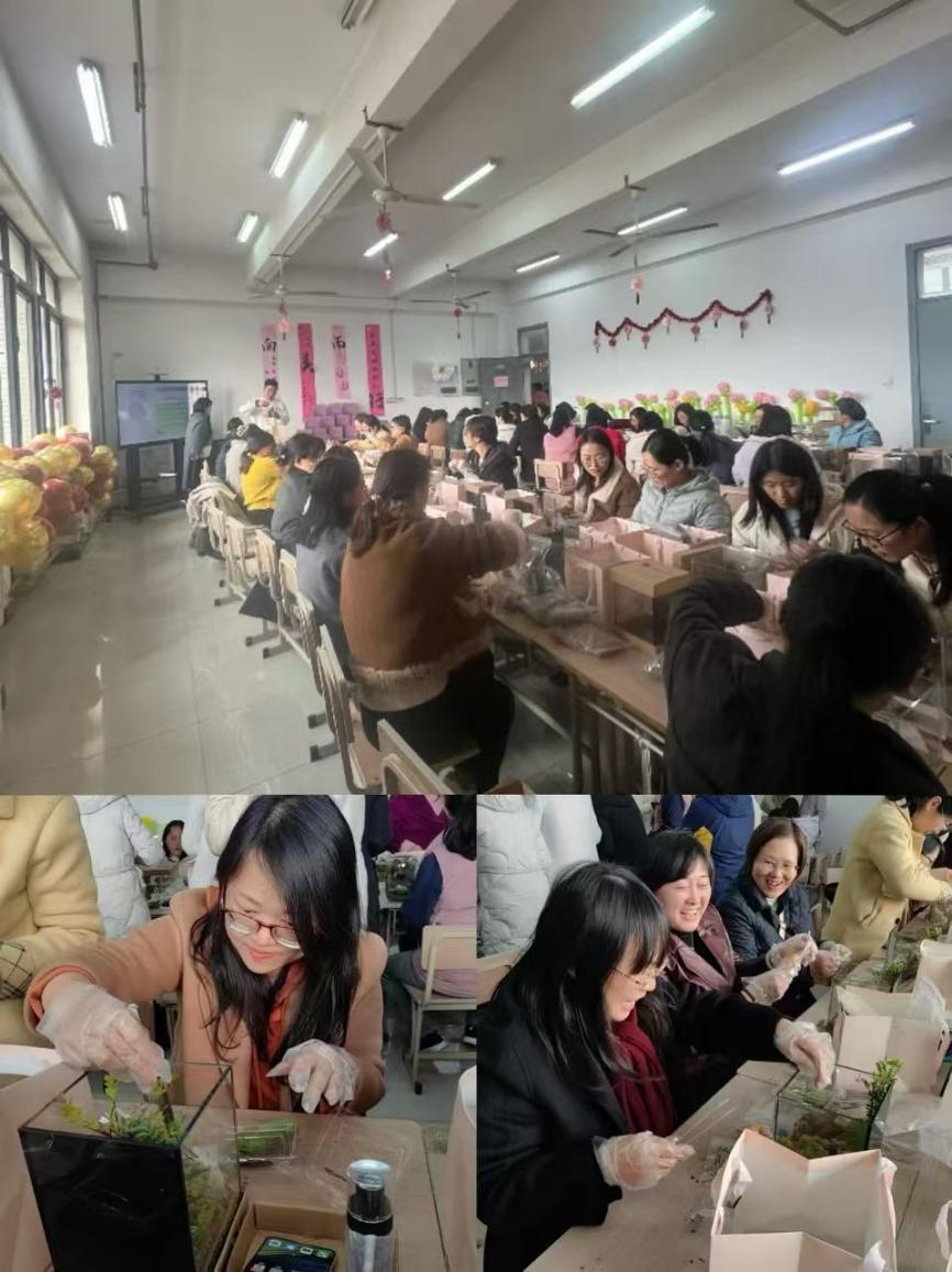王老师捧着自己创作的“春日庭院”笑言:“课堂上我们传递知识的种子,今天我们用双手播种自然的诗意,这份专注和耐心,倒和备课有异曲同工之妙。”参与活动的女教师们纷纷表示,将把作品带回办公室或教室,让方寸绿意成为师生共享的“治愈角落”。