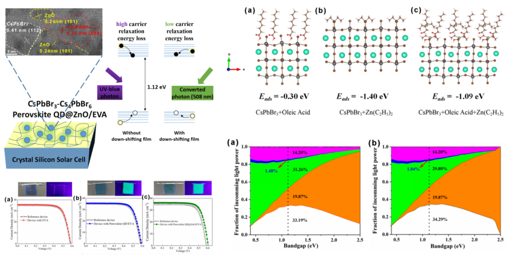 1. Jian Song, Yifan Ren, Shijie Gong, Liang Zhao, Wufan Xuan, Lei Zhu, Yulong Zhao, Yinghuai Qiang, Lili Gao,* Sheng Huang,* Performance Enhancement of Crystal Silicon Solar Cell by a CsPbBr3-Cs4PbBr6 Perovskite Quantum Dot@ZnO/Ethylene Vinyl Acetate Copolymer Downshifting Composite Film, Solar RRL, 2022, 6, 2200336.