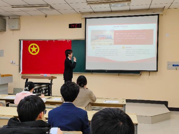 答辩伊始,各位参与评选的团支部负责人上台展示,围绕基层组织建设、团员教育管理、重点工作推进等方面进行系统汇报。接着,各支部重点汇报了学风建设成效、学科竞赛成果、主题团日特色活动及"三会两制一课"制度执行情况,全方位展现基层团组织在思想引领、成长服务、组织规范等方面的工作实绩。
