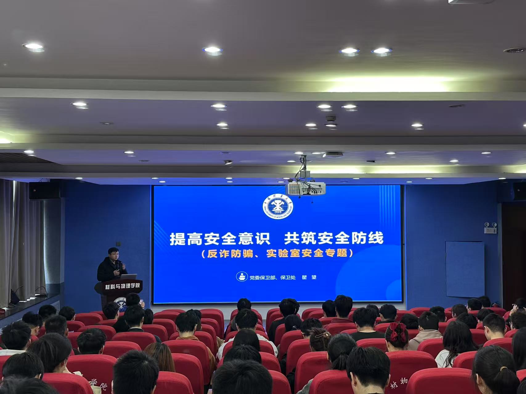 为深入贯彻总体国家安全观,增强公司师生国家安全意识,4月14日下午,公司于材料楼A105学术报告厅举办“筑牢安全防线,共护平安校园”——材物学院“国家安全教育日”专题讲座,特别邀请学校保卫处安全监督科科长瞿望、公司实验中心副主任魏京胜作专题分享。学院专兼职辅导员、团学组织主要员工干部、班级安全委员、生活委员、员工公寓寝室长代表等百余名师生共同参加此次讲座。