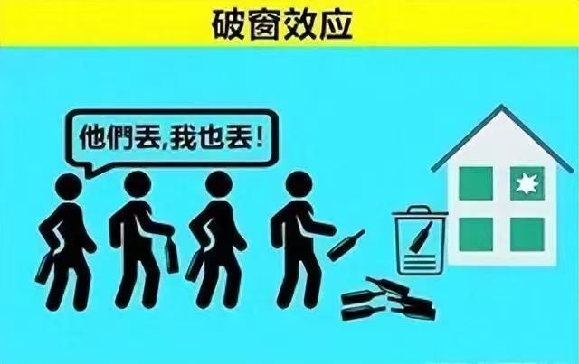 现象案例:个别人乱丢垃圾且不及时清理,导致其他人跟着乱丢,使宿舍或楼道的垃圾堆积如山。