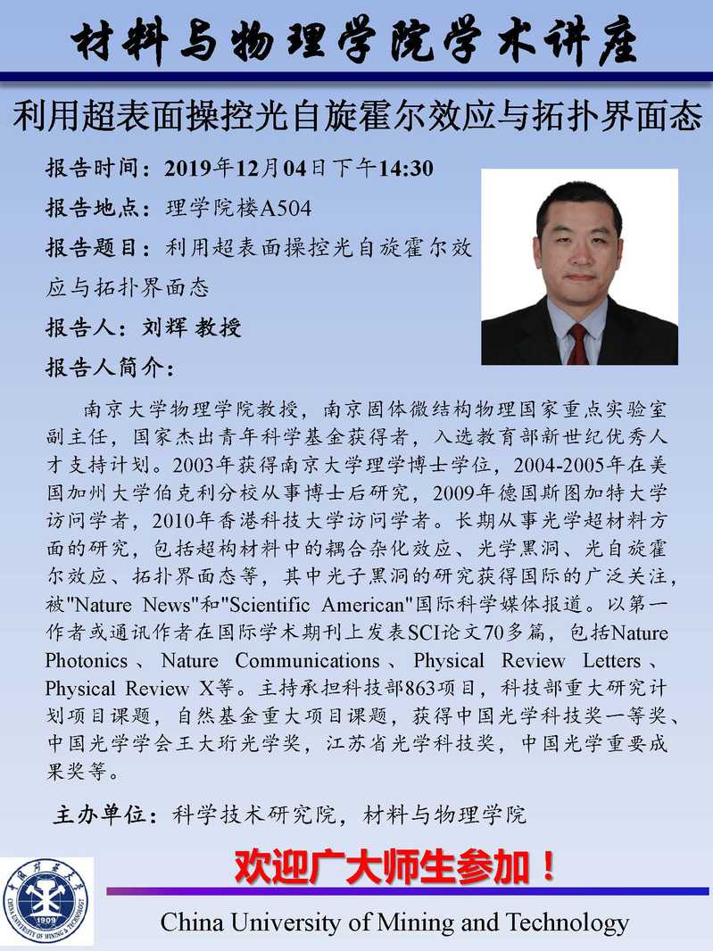 【学术讲座】利用超表面操控光自旋霍尔效应与拓扑界面态