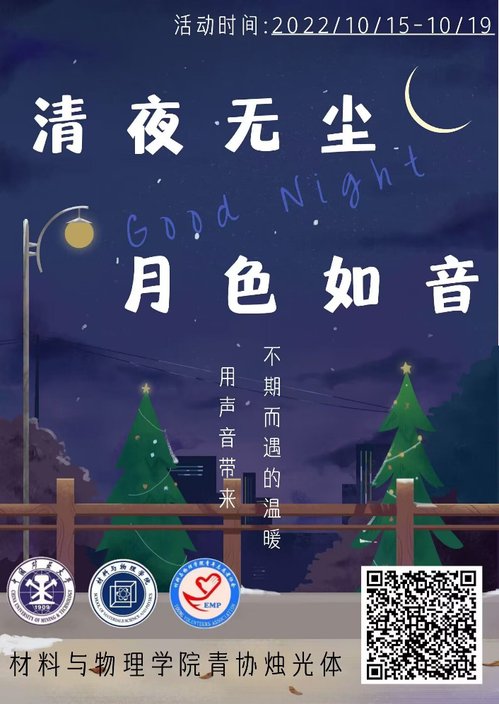 为了让同学们放下白天的疲惫与焦虑,丰富单调的课余生活,公司烛光体举办“清夜无尘,月色如音”音频征集活动,希望能用声音带来不期而遇的温暖。