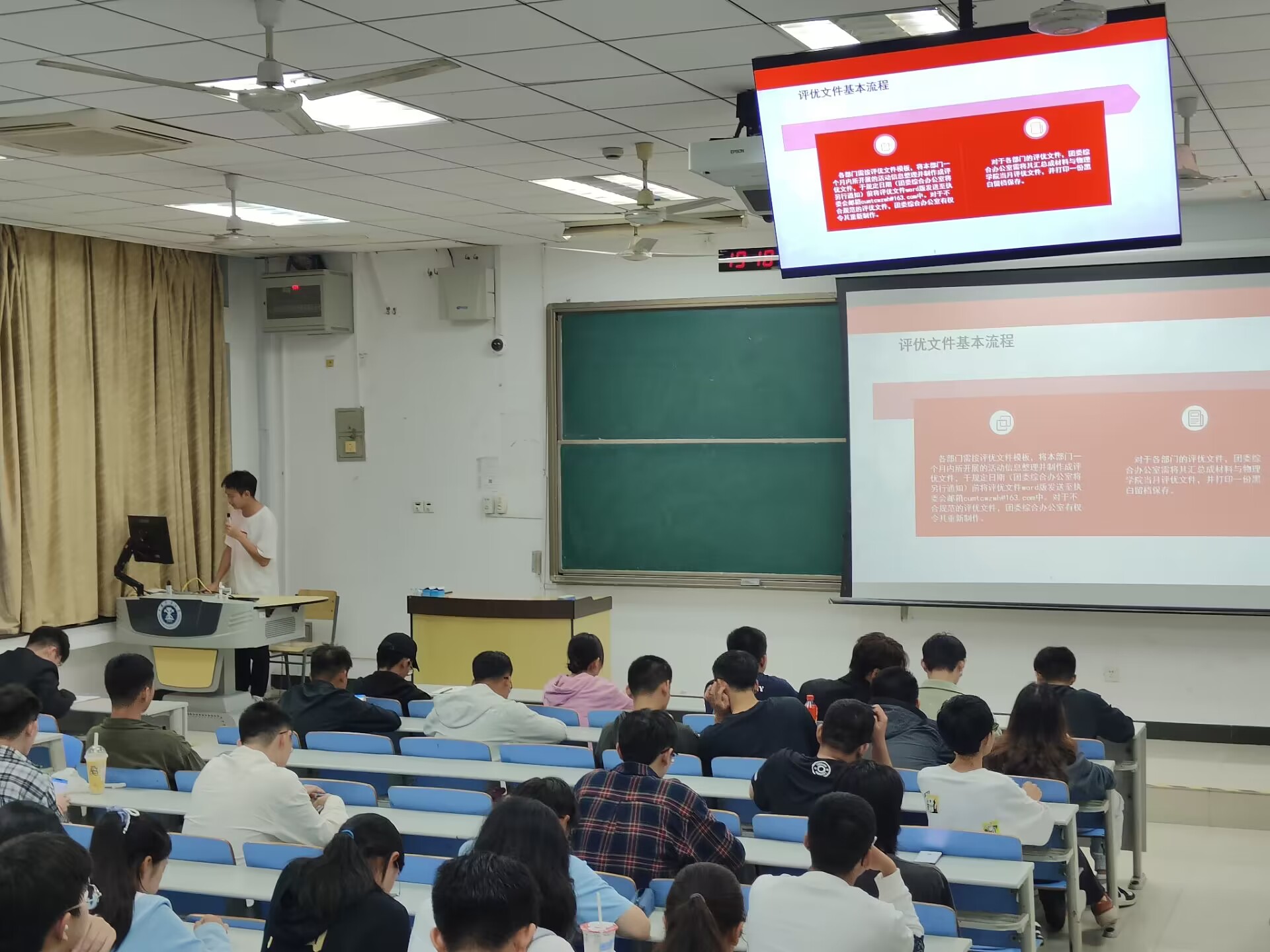 在会议上,首先由团委综合办公室详细介绍红头文件制作规范、各级活动举办流程、财务报销要求和部门评优标准等关键事项;随后,青年志愿者协会和新闻传播中心分别对志愿活动相关的具体工作以及新闻撰写与投稿进行了清晰的讲解。