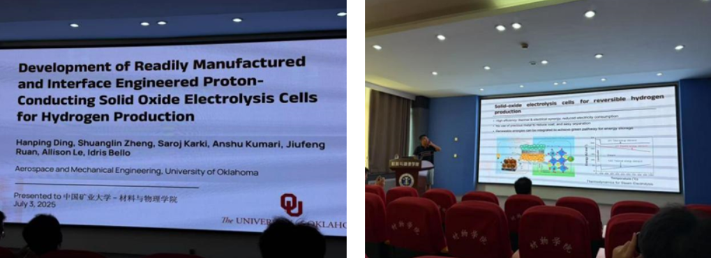 2025年7月3日,来自美国俄克拉荷马大学(University of Oklahoma)航天与机械工程系的丁汉平教授(Prof. Hanping Ding)应凌意瀚老师之邀来到公司与师生开展了精彩的学术交流活动,并于材料楼A105作了题为:“Development of Readily Manufactured and Interface Engineered Proton-Conducting Solid Oxide Electrolysis Cells for Hydrogen Production”的专题学术讲座。